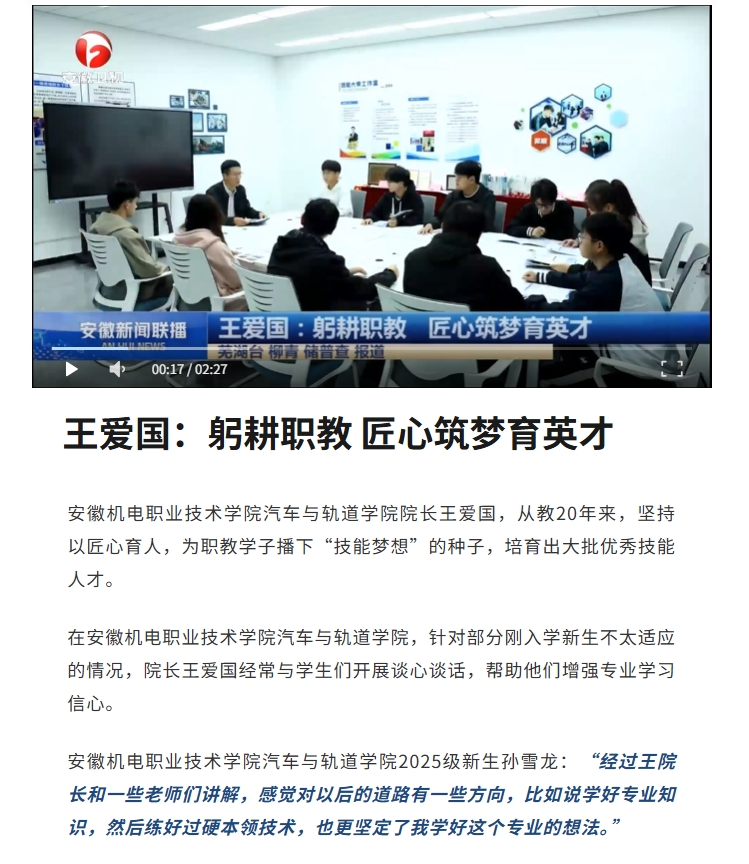 【安徽新闻联播】王爱国:躬耕职教 匠心筑梦育英才